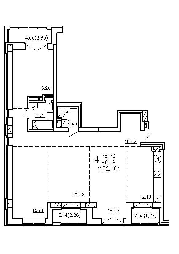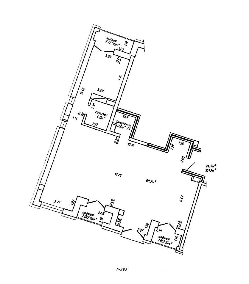 Площадь общ/жил/кух 101.2 / 88.2 / - кв.м.