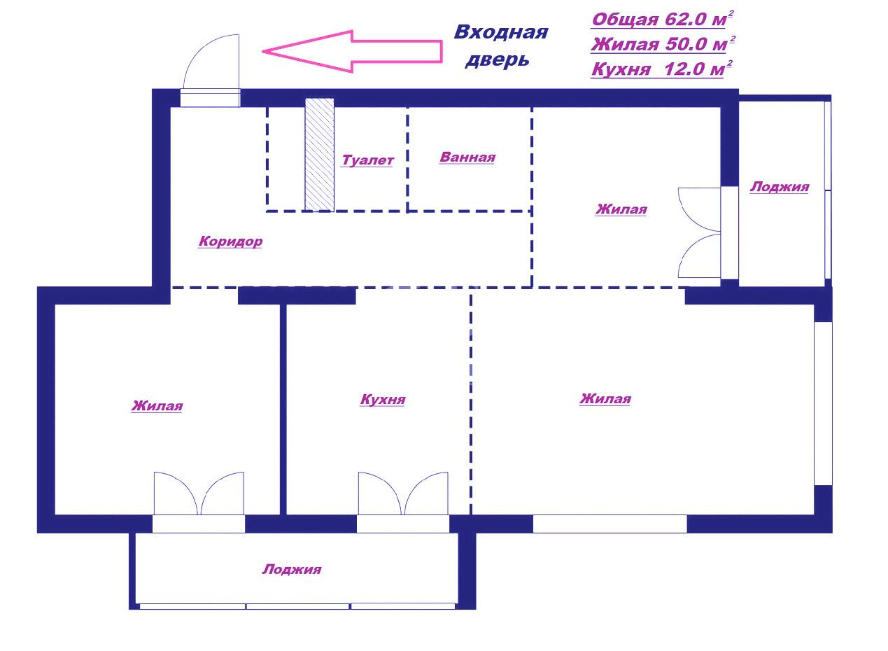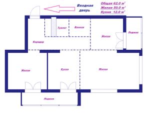 Площадь общ/жил/кух 62 / 45 / - кв.м.