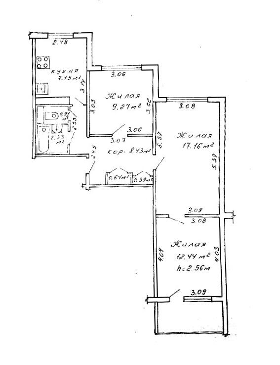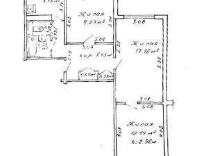 Площадь общ/жил/кух 58.7 / 38.9 / 7.2 кв.м.