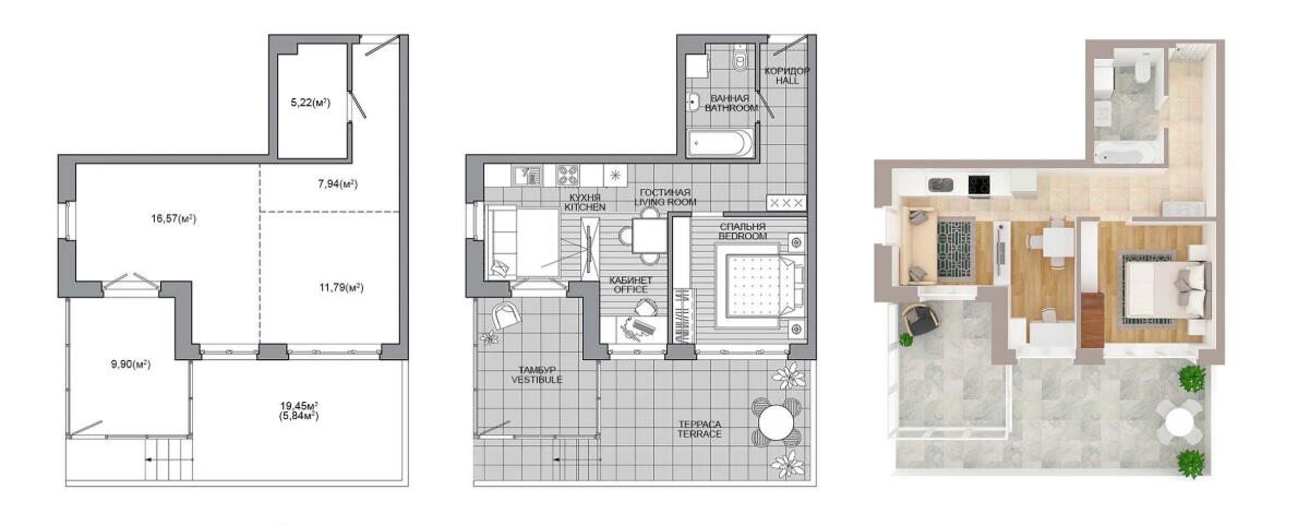 Современная квартира с личной террасой, со свободной планировкой и прекрасным видом на город!