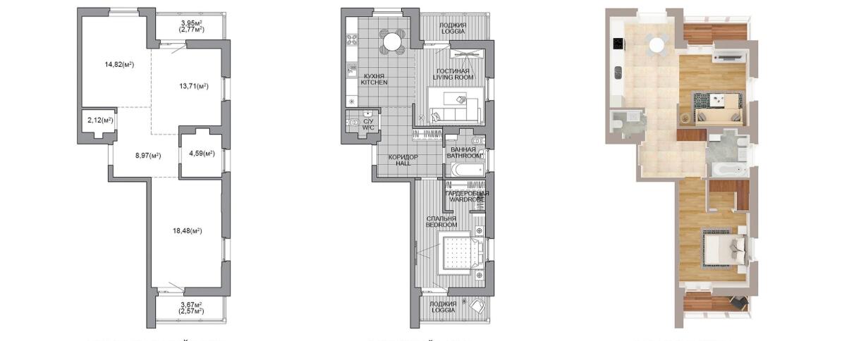 Площадь общ/жил/кух 66.6 / 54.55 / - кв.м.