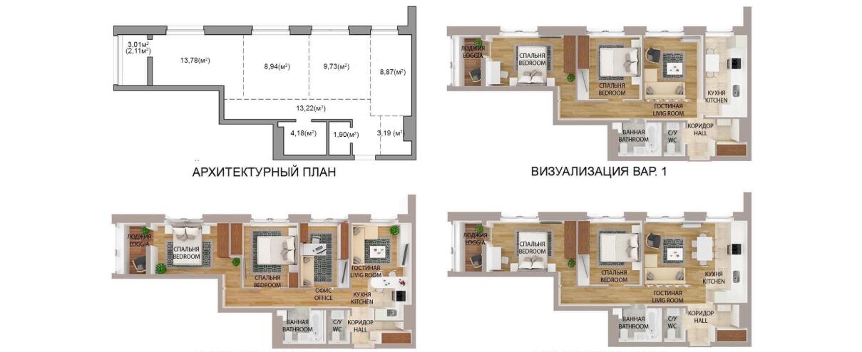 Площадь общ/жил/кух 66 / 57.81 / - кв.м.