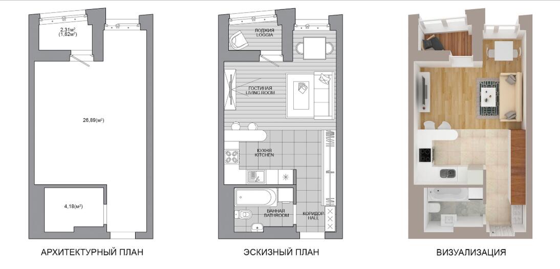 Площадь общ/жил/кух 32.69 / 27 / - кв.м.